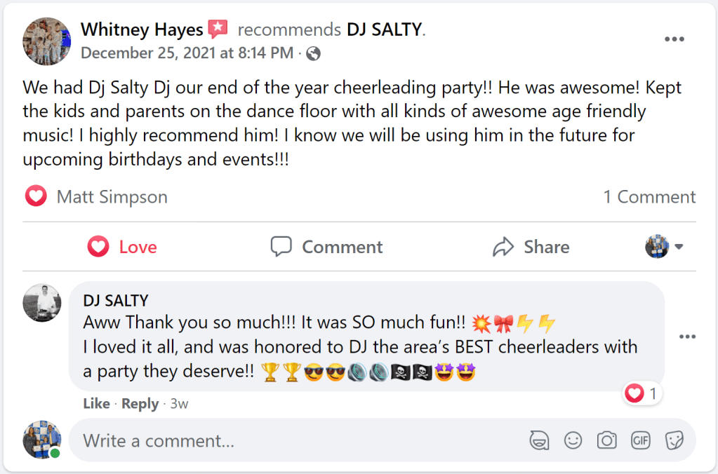 “Never a disappointment always a party!! He brings the entertainment in full force!!” -Kimberly Feilner Rankin
