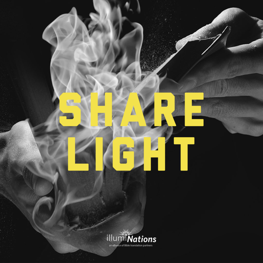 The “Share Light” campaign was established in 2010 by illumiNations, a collective impact alliance of Bible translation partners and resource partners working together to eradicate Bible poverty in this generation.